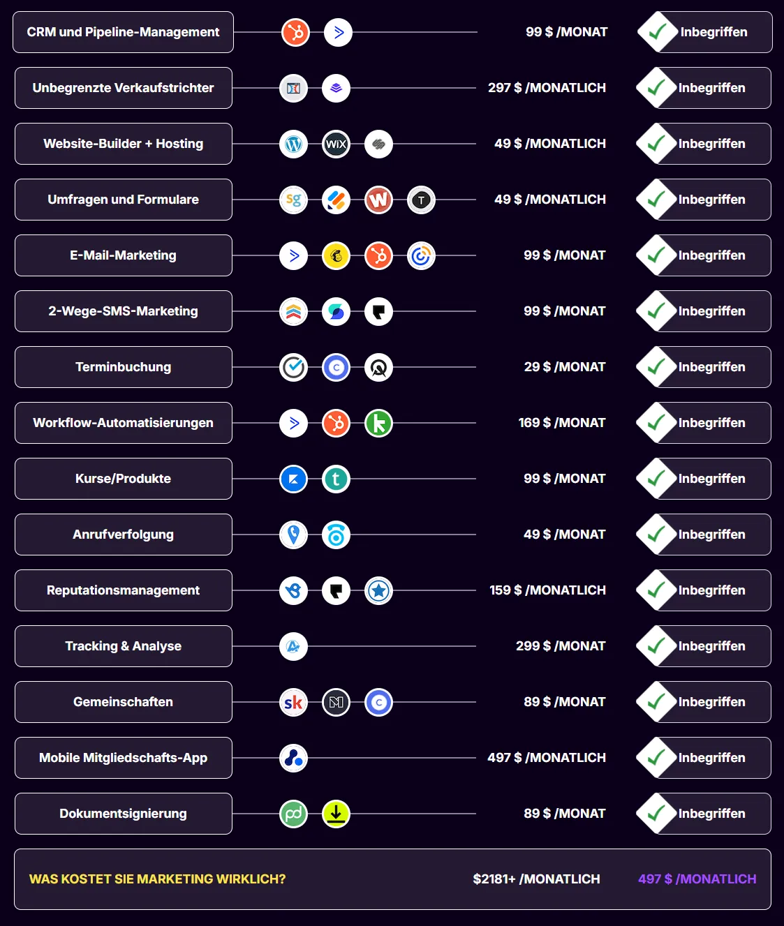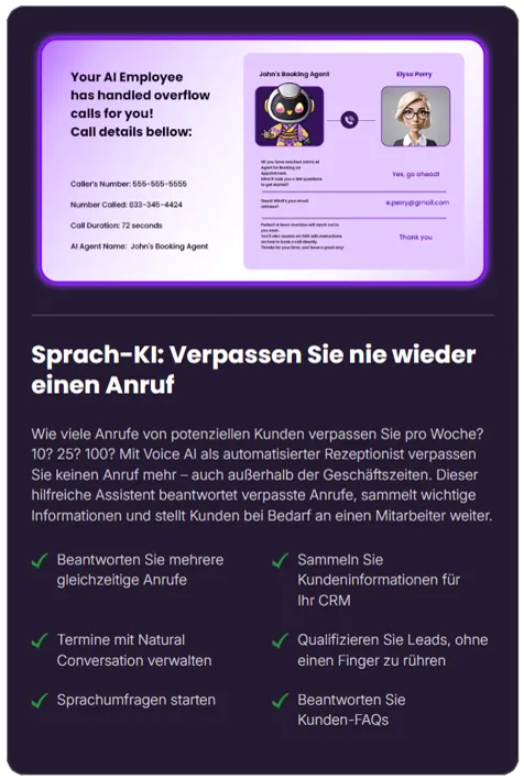 AI Employee kostet pauschal 97 €/Monat und das beinhaltet unbegrenzten Zugriff auf alle AI-Komponenten. Sie erhalten unbegrenzten Zugriff auf Konversations-KI, Sprach-KI, Bewertungen-KI, Inhalts-KI, Workflow-KI und mehr. Es gibt keine Einschränkungen bei der Nutzung. Keine zusätzlichen Kosten oder versteckten Gebühren. Nur ein Preis für die gesamte Automatisierungsleistung.
